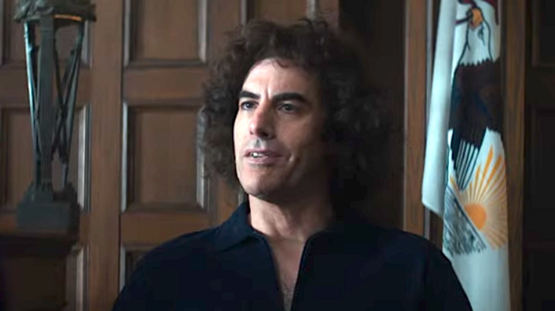 A powerful scene in the movie is where the former Attorney General, Ramsey Clark(Micheal Keaton), is brought as a witness in the case to prove the defence argument that the trial was politically motivated. When the justice department was under Clark, it had found no criminal charges against the defendants to link them to the Chicago riots. Astonishingly, the justice department had even found that the police started the violence. But the case was altered and conspiracy charges against the peace activists were brought in at the behest of the new Attorney General who was using the case as a tool to settle his personal scores with Clerk.