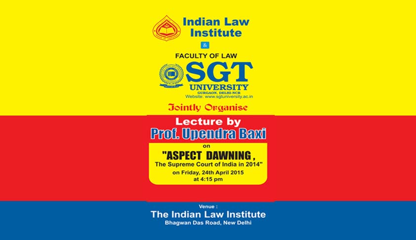 SGT University, Gurgaon in collaboration with Indian Law Institute is organizing a lecture by Prof. Upendra Baxi on “Aspect Dawning, the Supreme Court of India in 2014” at The Indian Law Institute, New Delhi.