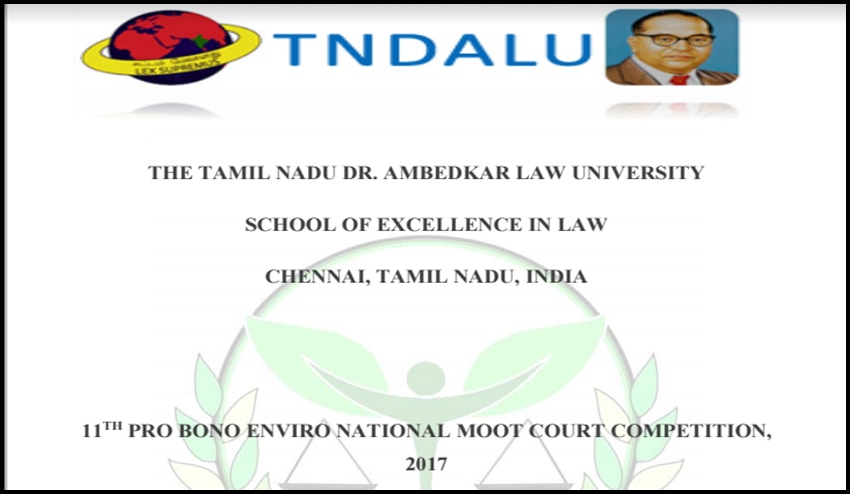 The Tamil Nadu Dr. Ambedkar Law University is proud to present 11th PRO BONO ENVIRO NATIONAL MOOT COURT COMPETITION to be held from 20th -22nd October, 2017. The Moot is based on Environmental Law and is intended to create awareness among the student body regarding pressing environmental issues.