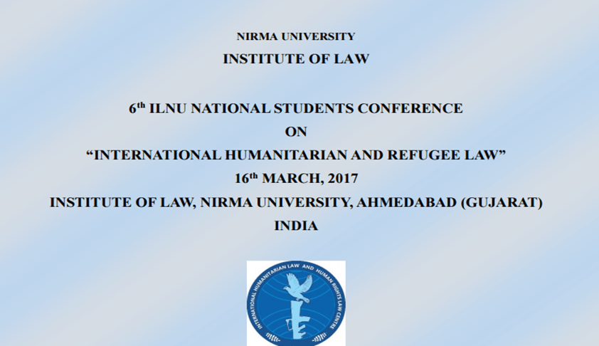 The Centre for International Humanitarian Law and Human Rights Law, Institute of Law, Nirma University, Ahmedabad (Gujarat) is organising the sixth edition of its annual flagship event – National Students conference on “International Humanitarian and Refugee Laws” in association with the International Committee of the Red Cross (ICRC) and United Nations High Commissioner for Refugees (UNHCR) on 16th March, 2017.