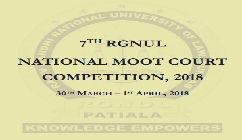 Rajiv Gandhi National University of Law, Punjab is organising the 7th RGNUL National Moot Court Competition, 2018 from 30th March-1st April, 2018 at the campus building of RGNUL.
