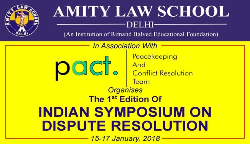 Amity Law School Delhi, in association with Peacekeeping and Conflict Resolution Team (PACT), has announced a 3-day symposium on Dispute Resolution called the Indian Symposium on Dispute Resolution (ISDR), from January 15 to 17.