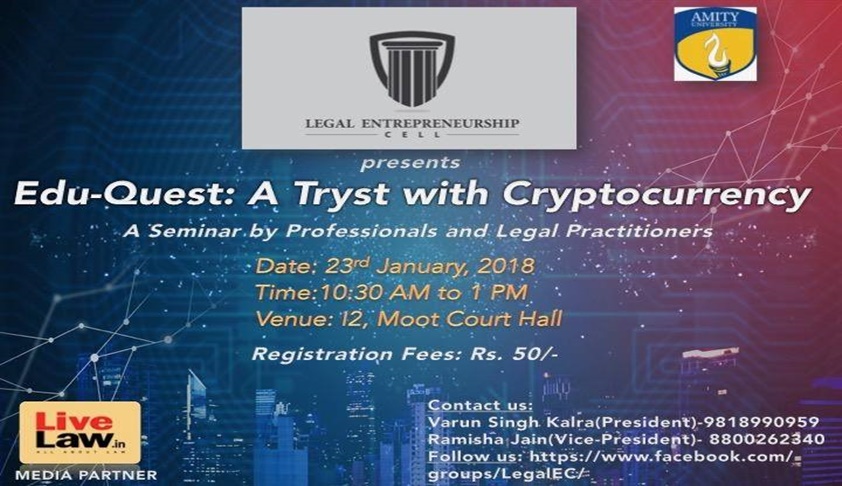 The Legal Entrepreneurship Cell, Amity Law School, Noida, will hold ‘ Edu-Quest: A Tryst with Cryptocurrency’, a seminar for professionals and legal practitioners, on its campus on Tuesday (23rd January).