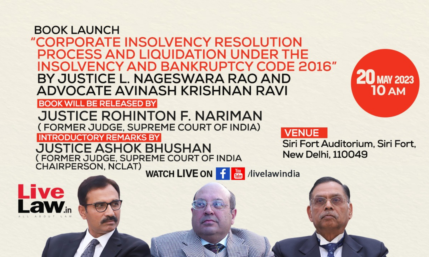 A commentary authored by Justice L. Nageswara Rao, Former Judge, Supreme Court of India and co-authored by Mr. Avinash Krishnan Ravi, Advocate, titled “Corporate Insolvency Resolution Process and Liquidation under Insolvency and Bankruptcy Code, 2016” published by Lexis Nexis, is scheduled to be launched on 20th May 2023 (Saturday).