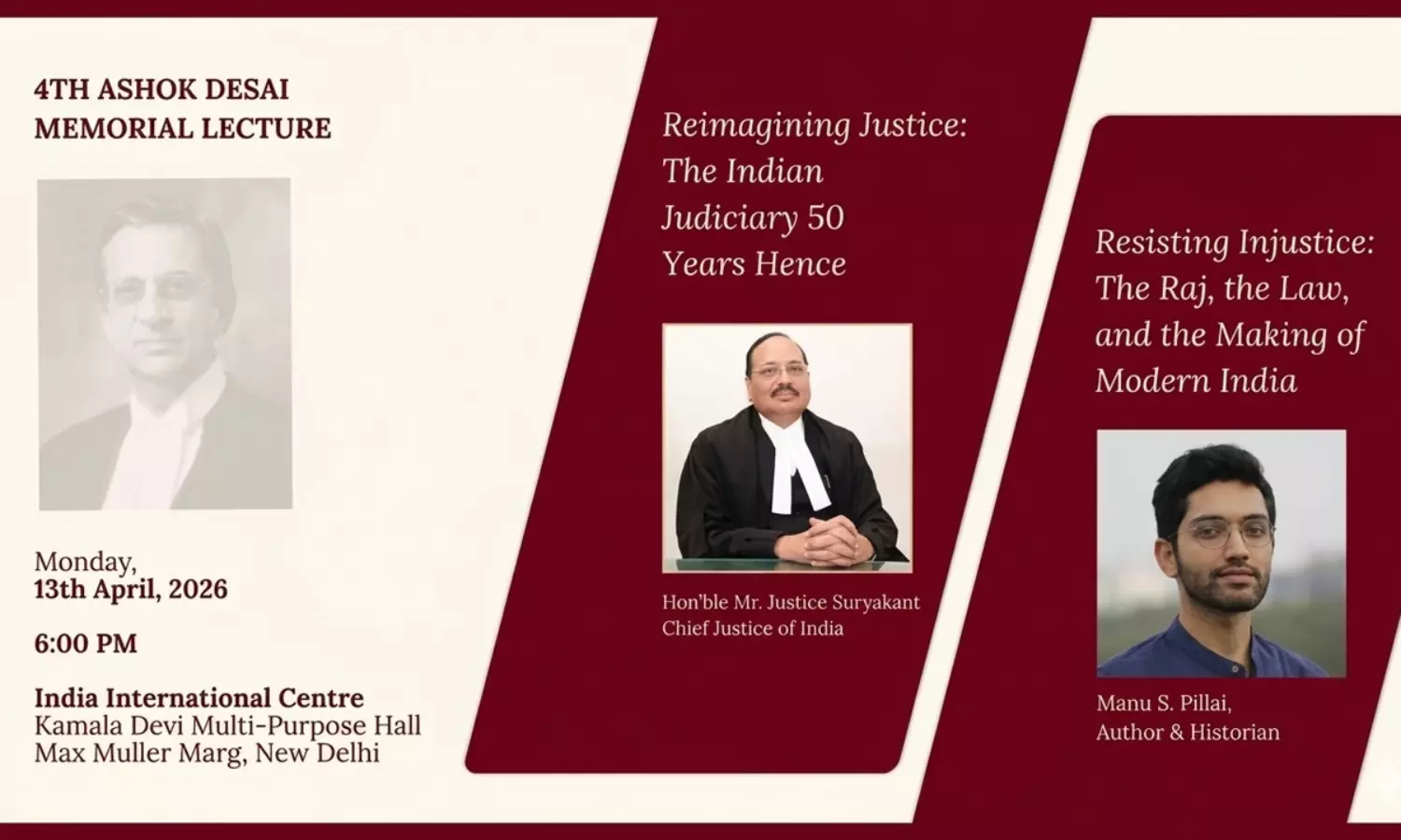 4th Ashok Desai Memorial Lecture: CJI Justice Surya Kant To Speak On "Reimagining Justice: The Indian Judiciary 50 Years Hence" [13th April, 6 PM]