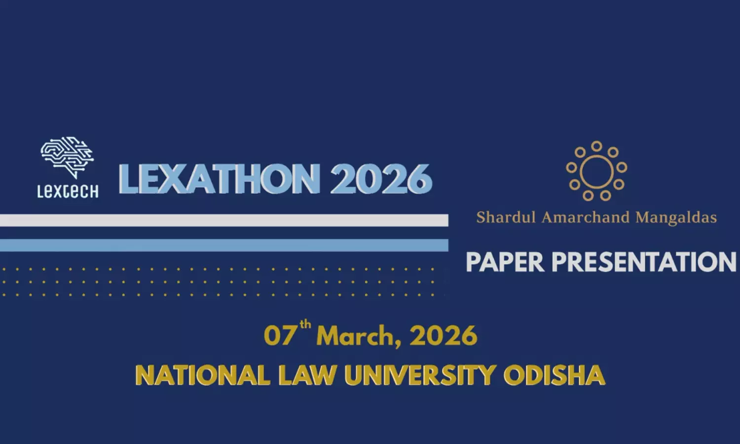 LexTech: Centre for Law, Entrepreneurship & Innovation, National Law University Odisha, is pleased to extend an invitation for the Paper Presentation Competition, organised in collaboration with Shardul Amarchand Mangaldas & Co, a key event under Lexathon 2026, NLUO's flagship Tech Law Conclave, scheduled to be held from 6th March to 8th March, 2026.