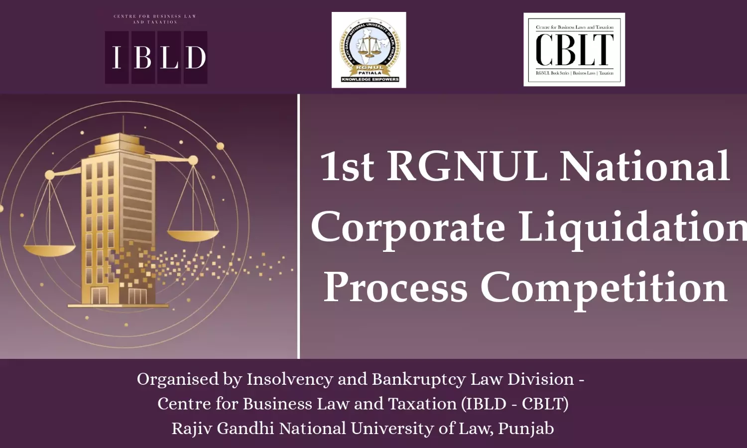 The 1st RGNUL National Corporate Liquidation Process Competition is a flagship academic initiative organised by the Insolvency and Bankruptcy Law Division (IBLD) under the Centre for Business Laws and Taxation (CBLT), Rajiv Gandhi National University of Law, Punjab. Conceived as a practice-oriented competition, it seeks to familiarise law students with the end-to-end corporate liquidation mechanism under the Insolvency and Bankruptcy Code, 2016, moving beyond conventional moot formats to reflect the real statutory and commercial responsibilities of a Liquidator.