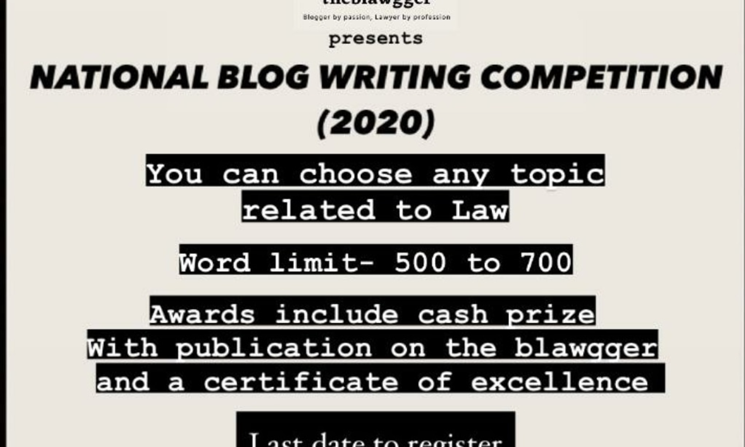 The Blawgger is organizing a National Blog Writing Competition.
