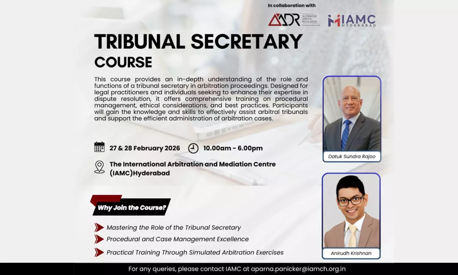 [Advertisement] Tribunal Secretary Course By IAMC Hyderabad and AIADR Malaysia