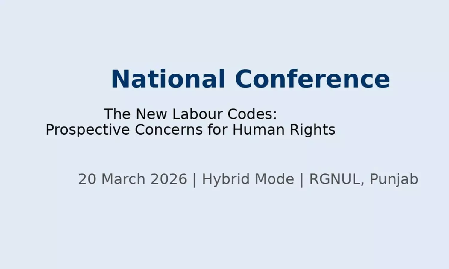 Rajiv Gandhi National University of Law (RGNUL), Punjab, through its Centre for Advanced Studies in Labour Welfare (CASLW) and Centre for Advanced Studies in Human Rights (CASIHR), is organising a One-Day National Conference titled “The New Labour Codes: Prospective Concerns for Human Rights” on 20 March 2026 in hybrid mode.