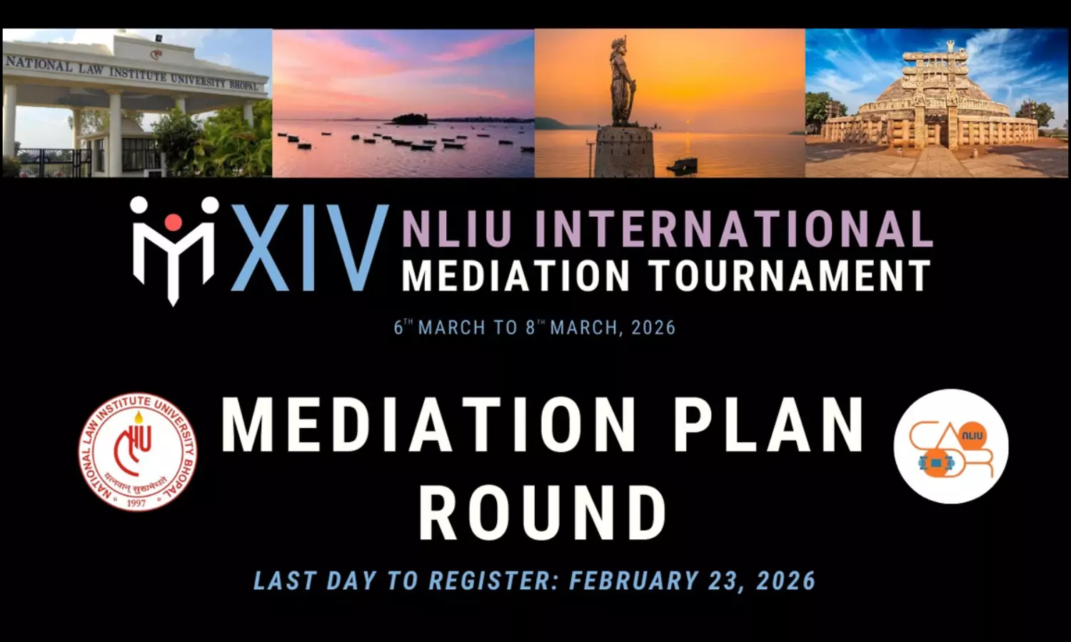 The Centre for Alternative Dispute Resolution (CADR), National Law Institute University (NLIU), Bhopal, invites law students from across India and abroad to participate in the Mediation Plan Submission Stage of the XIV NLIU International Mediation Tournament (NLIU-IMT) 2026.