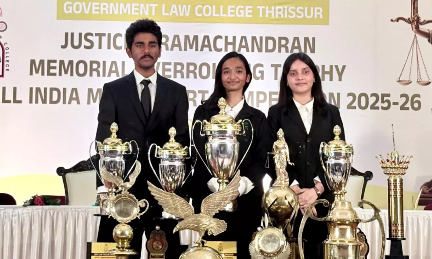 The National Law Institute University (NLIU), Bhopal, has announced that its team comprising Gauri Singh, S. R. Swami Meganathan, and Vaishnavi Tomar emerged as Winners of the XIV All India National Moot Court Competition, 2025-26, organized by Government Law College, Thrissur, Kerala.