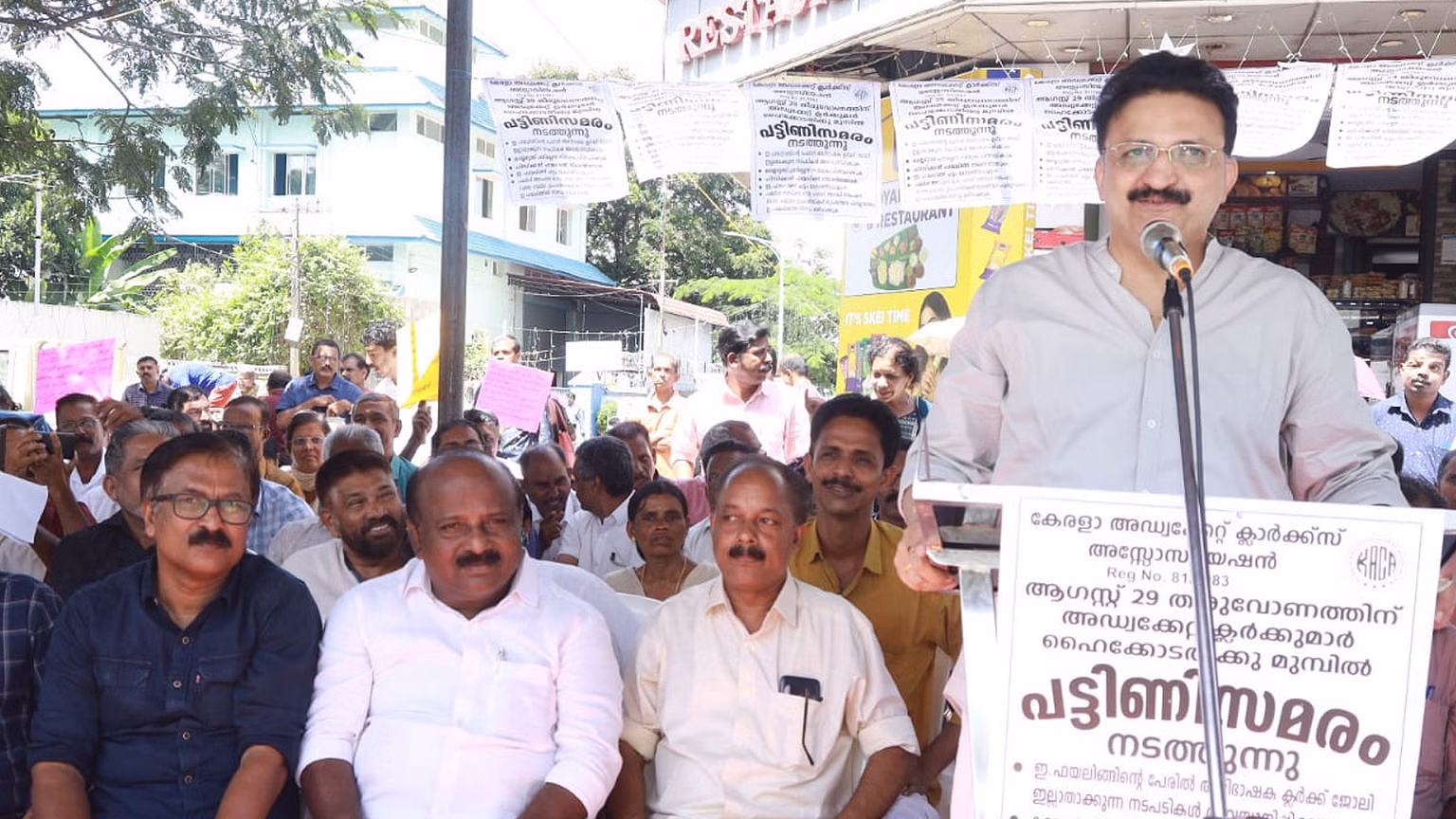 The hunger-strike organized by the Advocate Clerks' Association of Kerala was attended by around 200 persons. Ernakulam MP Hibi Eden was also in attendance at the protest.