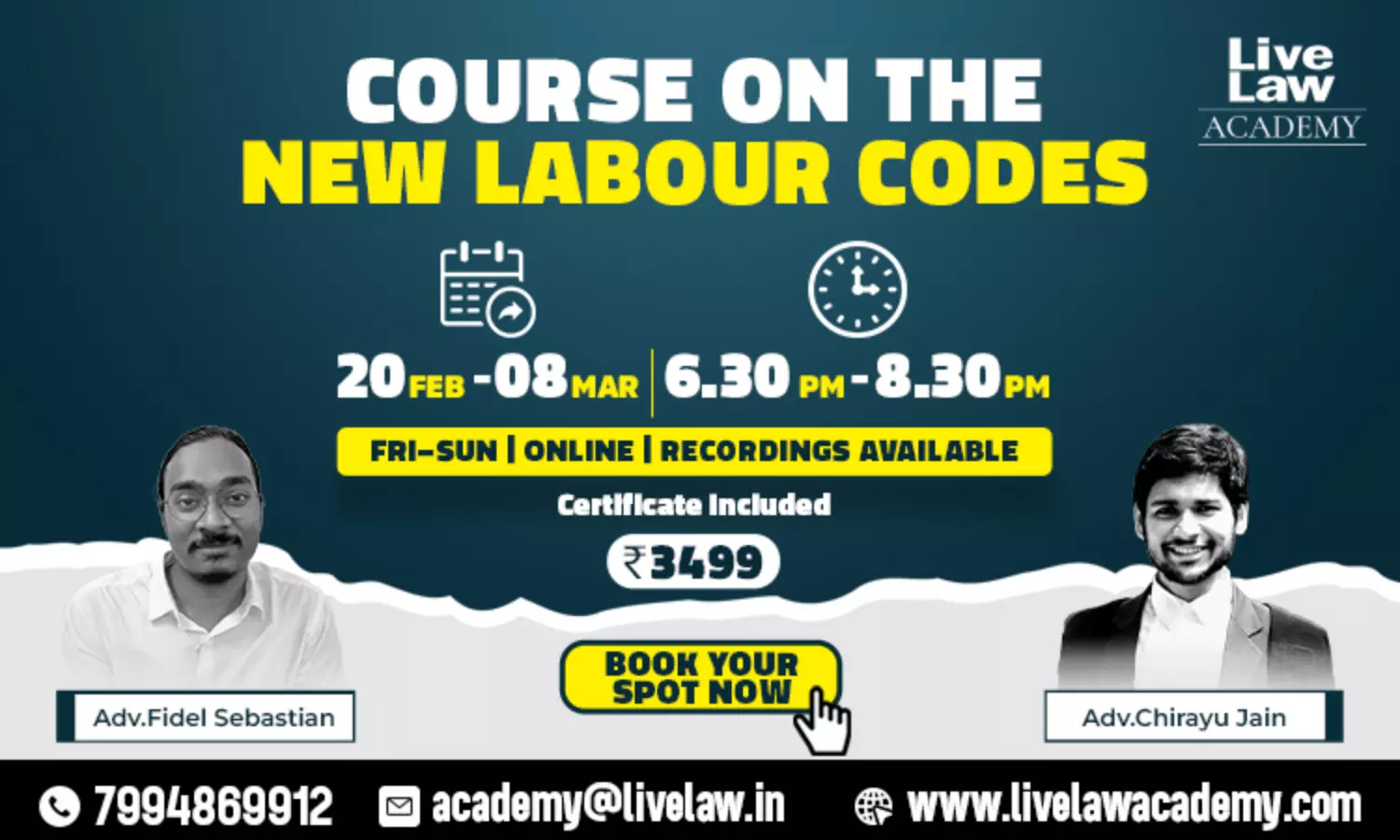 LiveLaw Academy has opened registrations for its upcoming Course on the New Labour Codes, a structured and practice-oriented online course designed to provide a comprehensive understanding of India's reformed labour law framework. Interested participants can view full course details and register through LiveLaw Academy here: