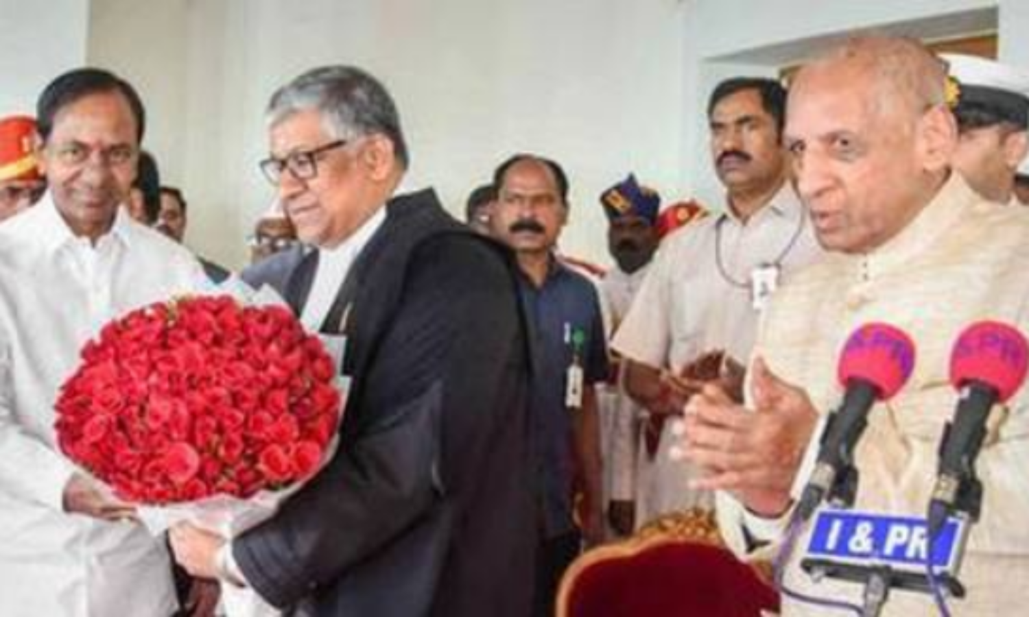 Radhakrishnan was sworn in as the chief justice of the Telangana High Court by Narasimhan at the Raj Bhavan in Hyderabad. Later, the chief justice administered oath to 12 judges of the high court in the court premises. Chandrashekar Rao was also present at the swearing-in of the other judges.