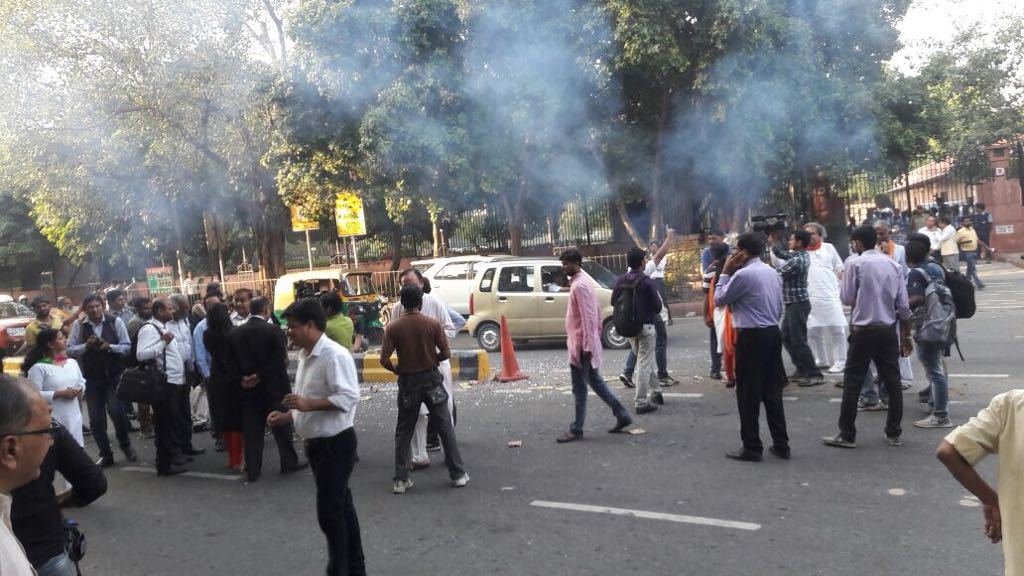 Members of an organisation named 'Azad Hind Fauj' have staged protest against Supreme Court’s order banning crackers by bursting crackers outside Supreme Court premises.According to News 18 report, 14 persons including women were detained. As per the report “Fourteen people, including three women, have been detained by the police and were taken to the Tilak Marg police station. The...
