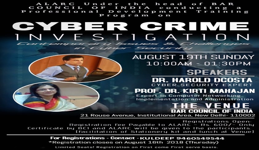 ![BCI & ALARC’s Development Training Programme On Cyber Crime Investigation [19th Aug; New Delhi] BCI & ALARC’s Development Training Programme On Cyber Crime Investigation [19th Aug; New Delhi]](https://www.livelaw.in/cms/wp-content/uploads/2018/08/CYBER-LAW-SEMINAR.jpg)