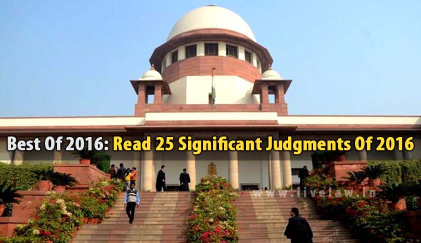 In 2016, the Supreme Court has pronounced over thousand judgments, and it is pleasure to announce the Live Law has reported most of it. While all of them are significant, as it comes from the Apex court of the country whose rulings have a force of law, some are more significant in view of the subject it dealt with and also the law it laid down. Following is a list of such 25...