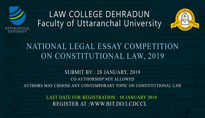 Law College Dehradun, Faculty of Uttaranchal University, Uttarakhand, is organising an Essay Competition on Constitutional Law, under the aegis of its Center for Constitutional Law.