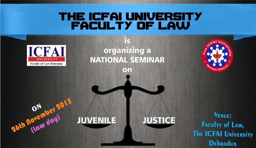 ICFAI Dehradun is pleased to announce a one day National Seminar on "JUVENILE JUSTICE & HUMAN RIGHTS: CONTEMPORARY ISSUES, CHALLENGES & OPPORTUNITIES" on 26th November, 2015 (LAW DAY).