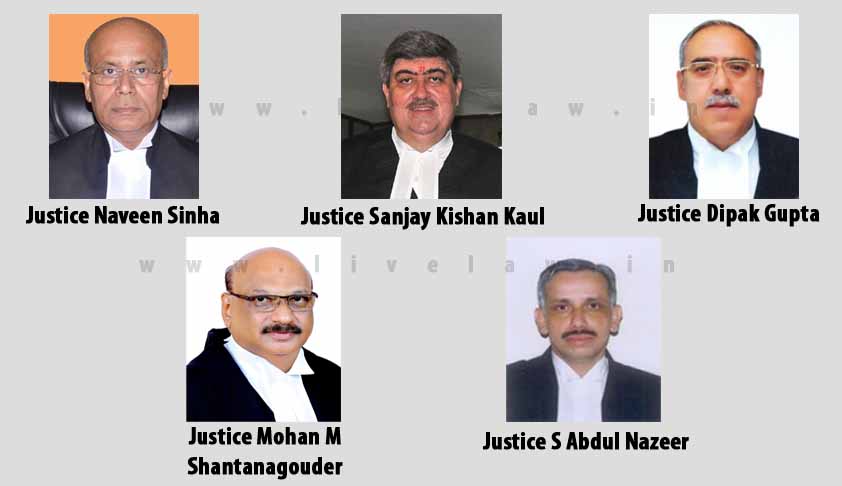 The Supreme Court Collegium has recommended the names of four High Court Chief Justices and a High Court Judge for the elevation to the Supreme Court of India, reports Times of India.As per the report, the names of Rajasthan HC CJ Naveen Sinha, Madras HC CJ Sanjay Kishan Kaul, Chhattisgarh HC CJ Dipak Gupta, Kerala HC CJ Mohan M Shantanagouder and Karnataka HC's Justice S Abdul Nazeer...