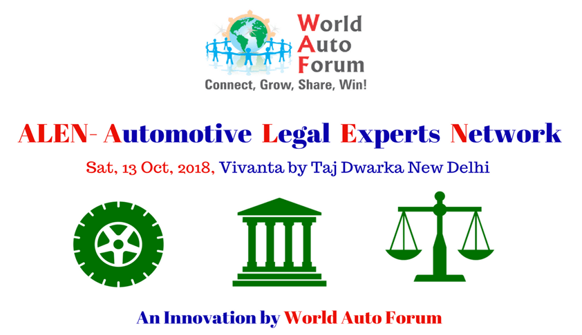 ALEN-Automotive Legal Experts Network is an innovation of World Auto Forum which will be held on October 13, 2018 at Hotel Vivanta by Taj, New Delhi.Key Topics: How to harness IP Protection in Automotive for Business and Competitive Advantage. Regulatory Challenges for Emission Compliances Migration to BS 6 The After Effective of GST: Learning, Challenges and Opportunities for Future....