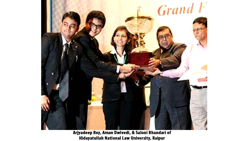Arjyadeep Roy (4th Yr), Aman Dwivedi (4th Yr), & Saloni Bhandari (4th Yr) of Hidayatullah National Law University, Raipur were the Winners at 2nd KIIT National Moot Court Competition, 2014. The Moot was organised by KLS, KIIT University, Bhubaneswar, Odisha.