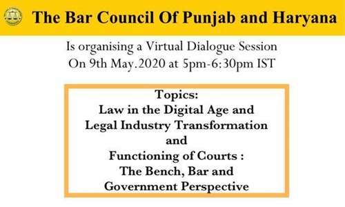 The Bar Council of Punjab and Haryana is organizing the 3rd virtual dialogue session. Date: 9th May Time: 5:00 PM to 6:30 PM Theme: Law in the Digital Age and Indian Legal Service Industry Transformation and Functioning of Courts: The Bench, Bar and Government Perspective. Keynote Speakers: Hon'ble Mr. Justice Arun Monga, Judge Punjab and Haryana High Court Hon'ble...