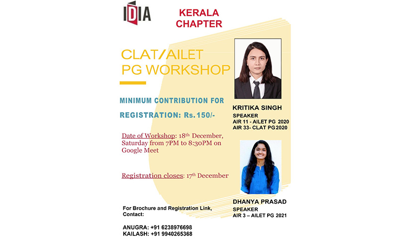 CLAT/AILET PG Workshop By IDIA Kerala Chapter [Register By 17th December]