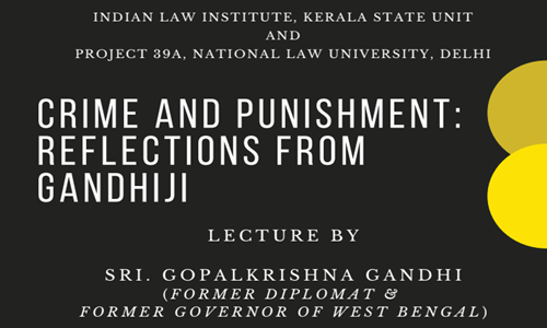 Indian Law Institute, Kerala State Unit and Project 39A, National Law University, Delhi are organizing Crime and Punishment: Reflections from Gandhiji. This is a Colloquium to Commemorate the 150th Birth Anniversary of Mahatma Gandhi. Date: 11th January Time: 11:00 AM Venue: Kerala High Court Auditorium A lecture will be delivered by Shri Gopalkrishna Gandhi, formal diplomat...