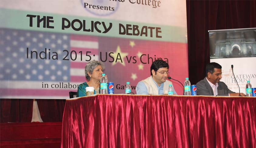 The Debating and Literary Society, Government Law College, in collaboration with Gateway House: Indian Council on Global Relations organized “The Policy Debate 2015” – the first of its kind, on the 18th of February, at the Convocation Hall of the University of Mumbai. The debate revolved around the topic “India 2015: China versus USA” between erudite policy experts - Ambassador Neelam Deo and Mr. K.N. Vaidyanathan, and was moderated by Mr. Akshay Mathur.