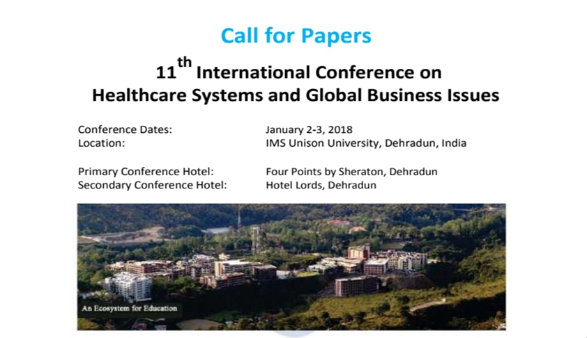 The Eleventh International Conference on Healthcare Systems and Global Business Issues will be held at the beautiful campus of IMS Unison University, Dehradun, India from January 2-3, 2018. This is only the third institution in India where this international conference will be held.
