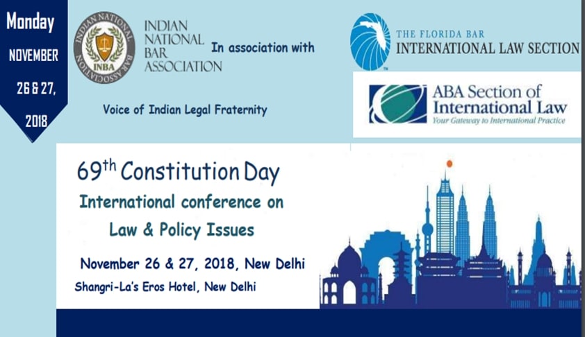 To coincide with the Indian Constitution Day celebrations, Indian National Bar Association is hosting its 7th Annual International Conference titled "69th Constitution Day".Date: 26th & 27th November, 2018Venue: The Shangri-La, Eros Hotel, New DelhiAbout the Conference:This conference proposes to bring participation from Legal Luminaries, Senior Government Officials, Legal Departments...