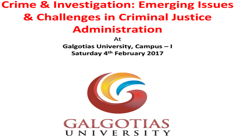 An International Conference on Crime and Investigation is being proposed to be organized at School of Law, Galgotias University. The Conference will examine Indian criminal justice administration through the lens of contemporary international development, with an emphasis on the relationship between procedural rights and questions of fair trial, access to justice and quality of justice.