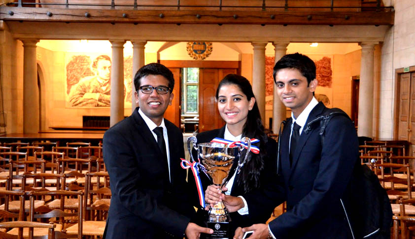 The winners in the finals of the International Rounds of the Price Media Law Moot Court Competition hosted by the Centre for Socio-Legal Studies, University of Oxford is a team from the Jindal Global Law School of the O.P. Jindal Global University in Sonipat, comprising of students Mohana Krishna C., BaniBrar and RonakTalati. The students of Jindal Global Law School won against the team from the University of Oxford in the finals; Queen Mary University in the semi-finals and Singapore Management University in the quarter-finals to have achieved this feat.