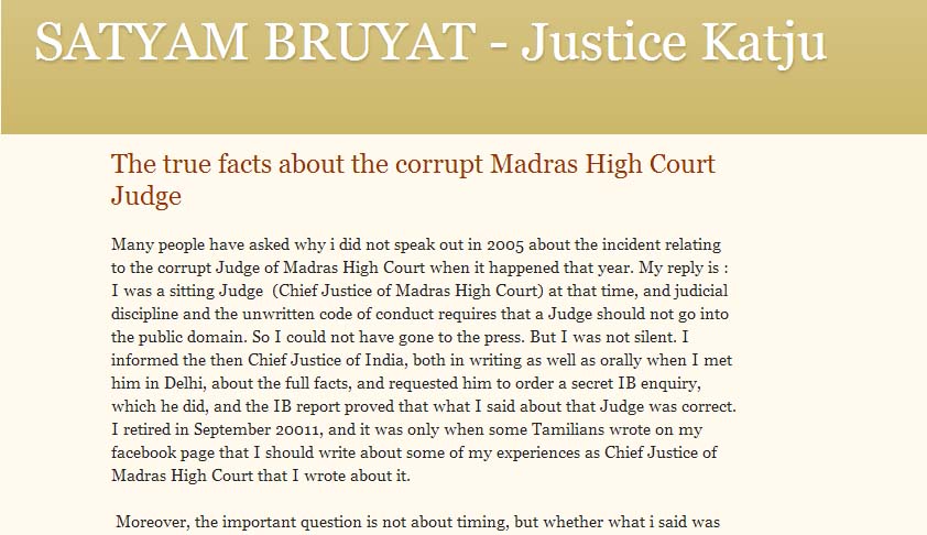 The hullabaloo surrounding Justice Katju’s allegations grow convoluted every passing day. Former Chief Justice of India R.C. Lahoti has now denied any communication by Justice Katju about the ‘corrupt’ conduct of the Judge in question. He stated, “Specifically, in the matter of Justice Ashok Kumar and even generally, nobody has ever tried to influence or pressurize me nor have I ever...