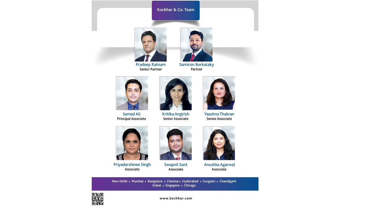 Kochhar & Co. comprised of Senior Partner Pradeep Ratnam, Partner Samiron Borkataky, Principal Associate Samad Ali, Senior Associate Kritika Angirish, Senior Associate Yaashna Thakran, Associate Priyadarshinee Singh, Associate Swapnil Sant and Associate Anushka Agarwal.