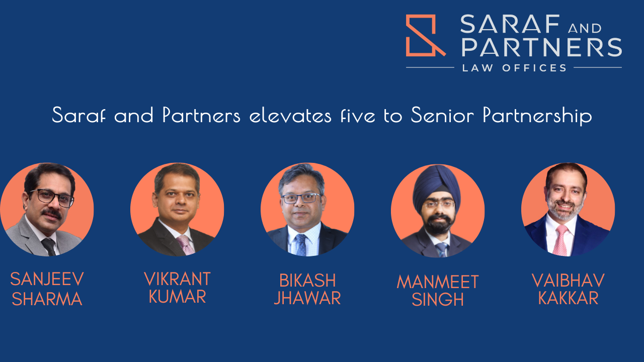 Saraf and Partners announced the elevation of five partners to Senior Partners. The promotion is a recognition of their outstanding performance, commitment, and contribution to the growth and success of the firm.