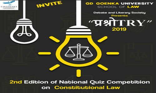 G. D. Goenka University, School of Law, Debate and Literary society is organizing Prashno-try – 2nd National Quiz on Constitutional Law, 2019 which was held on 28th March 2019.