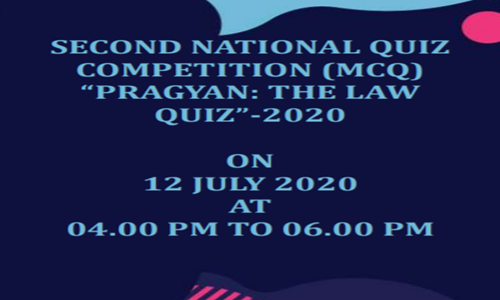 Modern College of Law, Mohan Nagar, Ghaziabad is organizing Second National Quiz Competition (MCQ) "Pragyan: The Law Quiz" – 2020 to be held on 12th July 2020 from 4:00 pm to 6:00 pm.