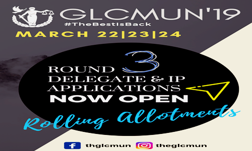 Applications Invited For Round Three Of Delegate Applications Of GLCMUN'19 [22nd-24th March]