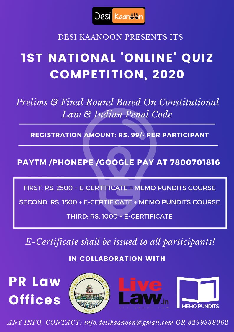 ![Desi Kaanoon National Online Quiz Competition [5th-6th July] Desi Kaanoon National Online Quiz Competition [5th-6th July]](https://www.livelaw.in/h-upload/2020/06/24/750x450_376974-inbound912737213060752275.jpg)