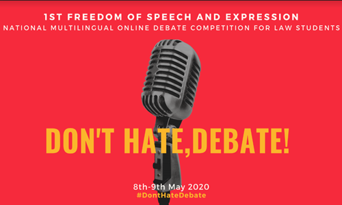 Don't Hate, Debate – 1st Freedom Of Speech & Expression - National Multilingual Online Debate Competition For Law Students [May 8-9, 2020]