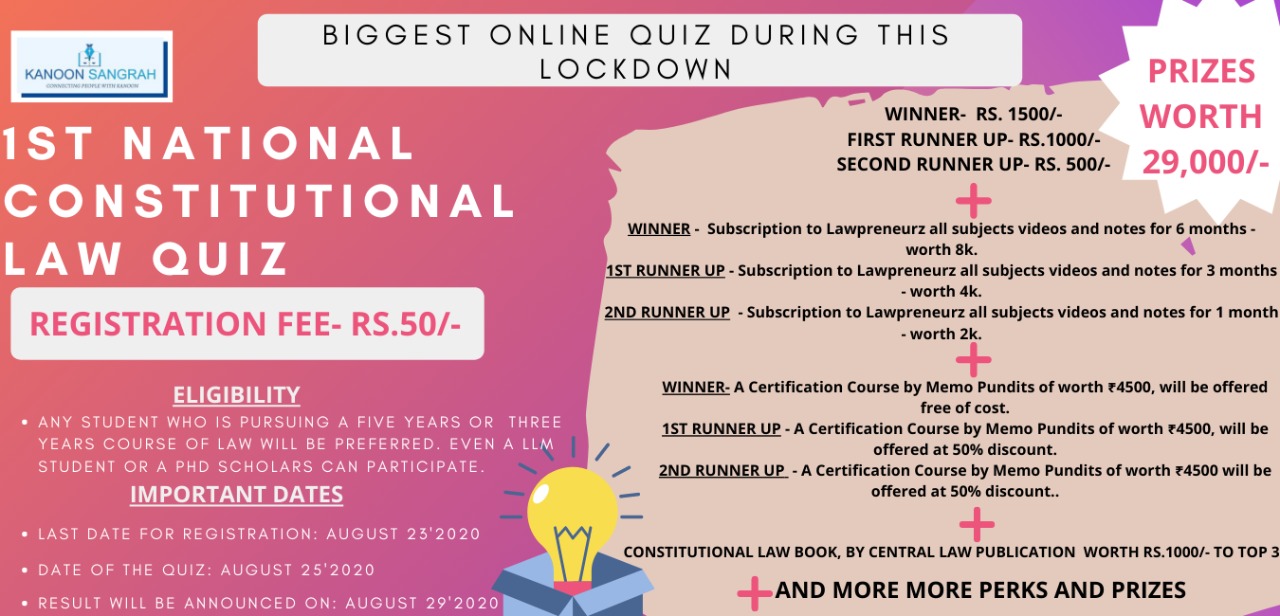 Kanoon Sangrah First Online Constitutional Law Quiz Competition [25th Aug]