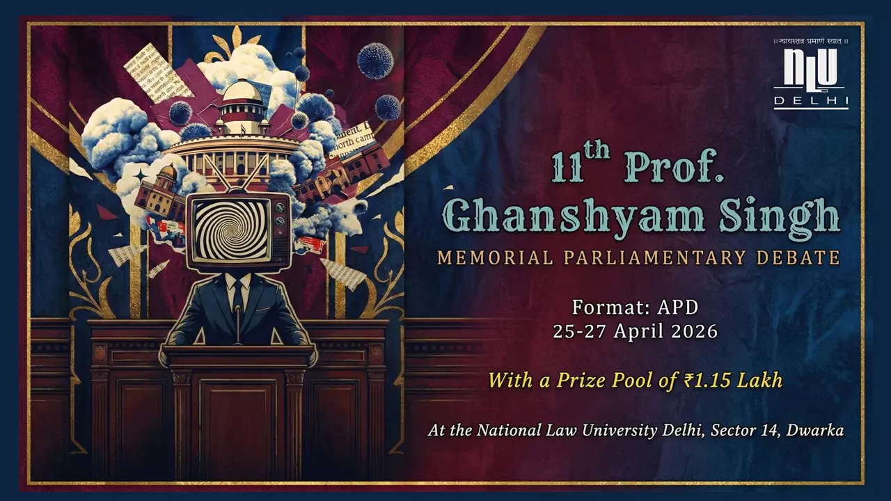 National Law University Delhi is set to host the 11th Prof. Ghanshyam Memorial Parliamentary Debate. The competition invites students from across institutions to participate in parliamentary debating.