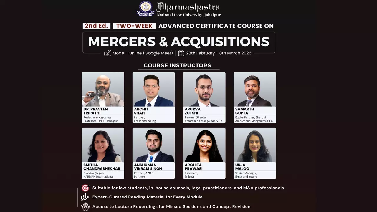 [Advertisement] 2nd Edition Two-Week Advanced Certificate Course On Mergers And Acquisitions By Dharmashastra National Law University, Jabalpur