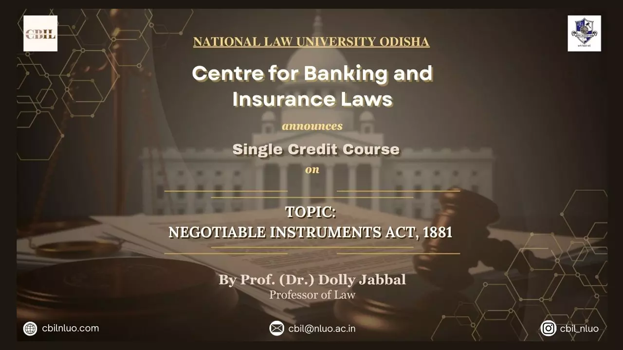 The Centre for Banking and Insurance Laws, National Law University Odisha, has announced a Single Credit Course on Negotiable Instruments Act, 1881, scheduled from 11th February 2026 to 25th February 2026.