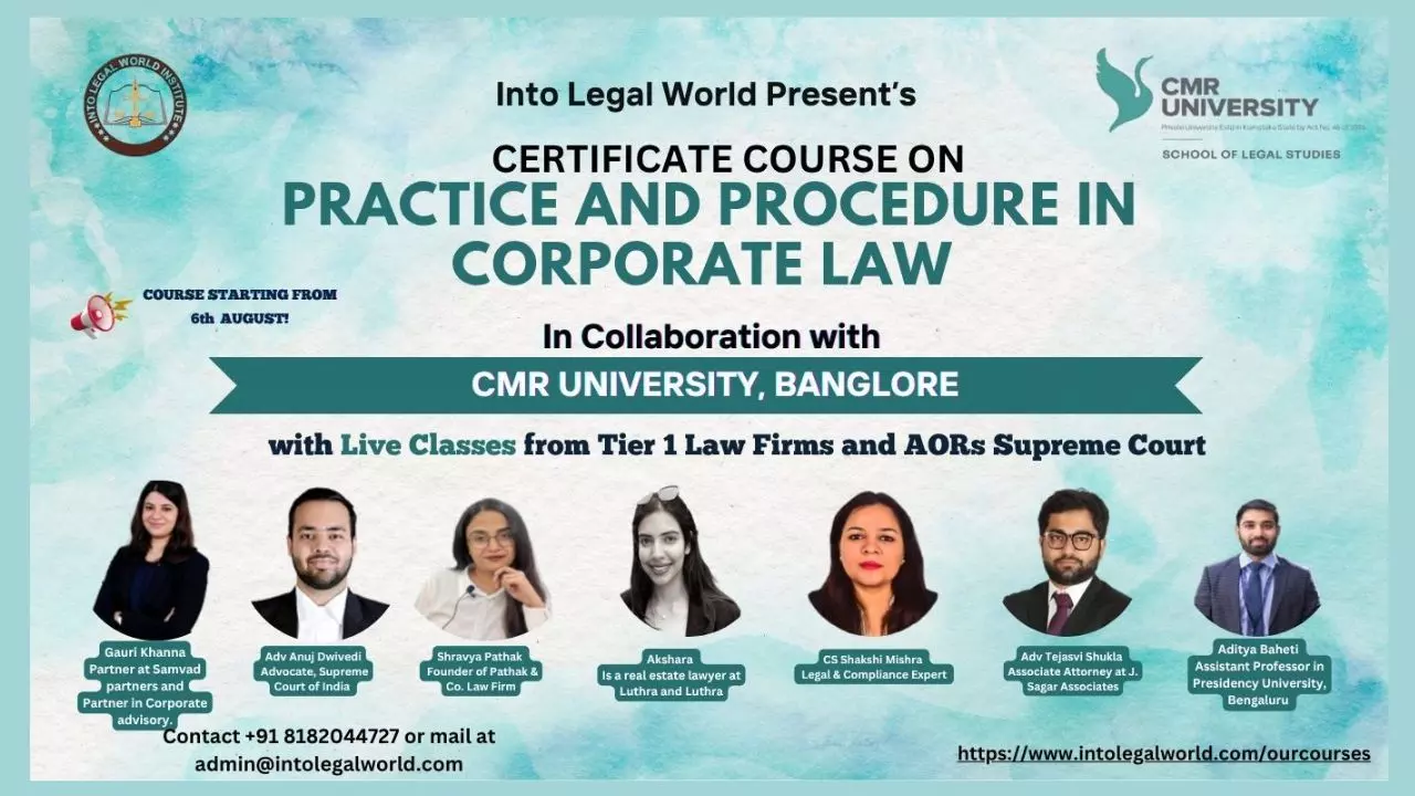 [Advt.] Certificate Course On Corporate Law Launched By Into Legal World In Collaboration With CMR University