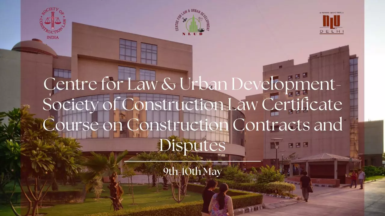 The Centre for Law and Urban Development (CLUD), National Law University Delhi, in collaboration with the Society of Construction Law India (SCL-India), is organising a two-day Certificate Course on Construction Contracts and Disputes on 9th and 10th May 2026 at NLU Delhi. The course is aimed at equipping law students, practicing advocates, and legal professionals with the foundational tools to navigate one of India's fastest-growing areas of legal practice.