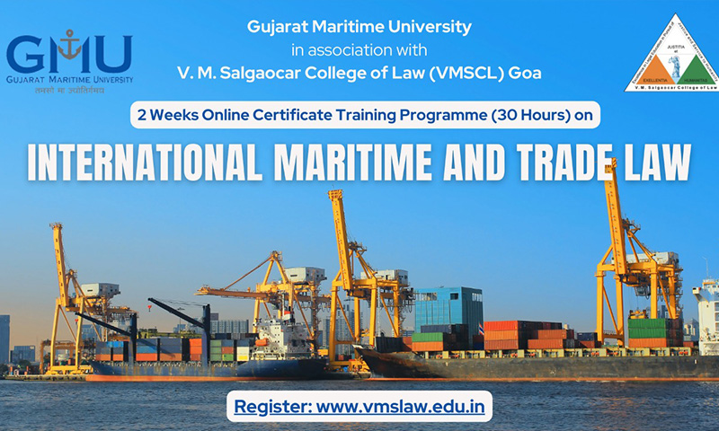 Gujarat Maritime University, in association with V. M. Salgaocar College of Law (VMSCL) is Organising a 2 Weeks Online Certificate Training Programme (30 Hours) on International Maritime and Trade Law.
